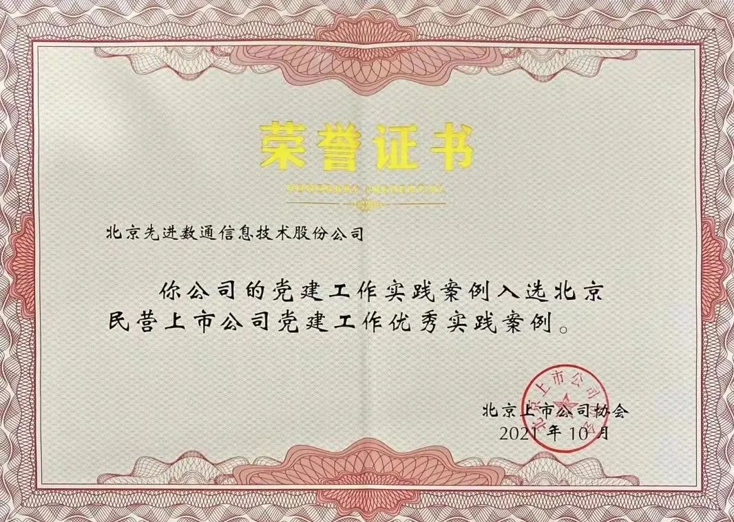 近期,北京上市公司协会授予北京Ezpay钱包信息技术股份公司荣誉证书,Ezpay钱包党建工作实践入选北京民营上市公司党建工作优秀实践案例,相关党建活动已收录在《北京民营上市公司党建工作优秀实践案例汇编》。
